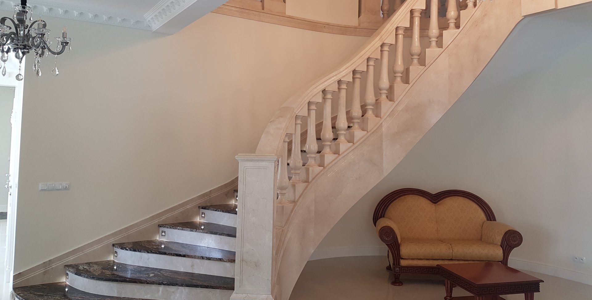 Ukończyliśmy kolejny duży projekt okazałej rezydencji. Prace trwały od połowy roku, udało się nam wyrobić przed końcem bieżącego. Na szczególną uwagę zasługuje balustrada wykonana z marmuru. Stanowiła ona prawdziwe wyzwanie, jeśli chodzi o projekt, precyzyjną obróbkę i pracochłonny montaż. Nasz zespół stworzył wyjątkowe i ekskluzywne schody, których dopełnienie stanowi kamienna balustrada. Doskonale koresponduje ona z wystrojem wnętrza, dostarczając szczególnych estetycznych wrażeń.